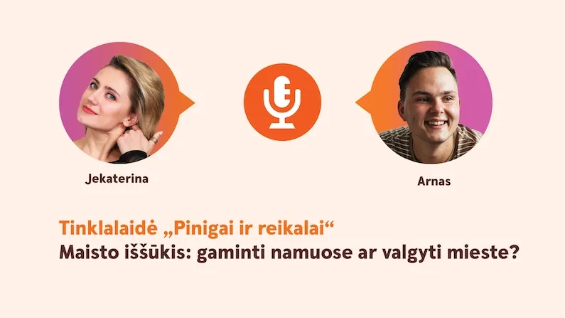 Šioje #Pinigaiirreikalai tinklalaidėje bandoma atsakyti į pagrindinį klausimą, kur valgyti yra pigiau – namuose ar mieste? Laidos metu atliekamas eksperimentas: iššūkių entuziastė Jekaterina Zibireva visos dienos patiekalus valgo mieste, o maisto entuziastas Arnas Raulinaitis bando atkartoti ir pasigaminti šiuos patiekalus namuose. Dalyviai vertina ne tik kainą, bet ir sugaištą laiką, efektyvumą bei galimybę vienodai kokybiškai mėgautis skonių įvairove namuose ir restoranuose.