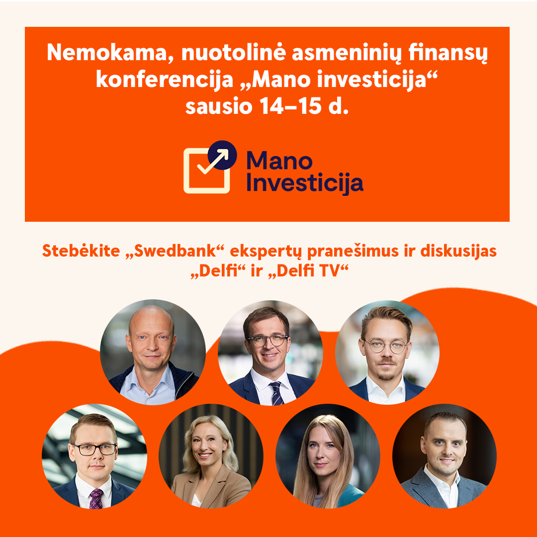 Nauji metai dažnai atneša ir naujus finansinius tikslus – vieni ieško būdų užsidirbti, taupyti, kiti svarsto pradėti investuoti ir domisi, kaip prasmingai įdarbinti laisvas santaupas. Į visus šiuos ir kitus aktualius asmeninių finansų klausimus atsakymų kasmet ieškoma nuotolinėje, nemokamoje konferencijoje „Mano investicija“, kurios pagrindinis partneris „Swedbank“. Ją tiesiogiai stebėti bus galima jau sausio 14–15 dienomis naujienų portale „Delfi“ ir per „Delfi TV“.