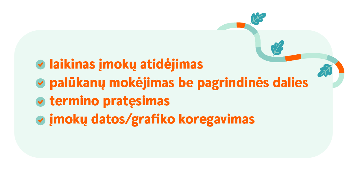 Nuosavi namai – tai vieta, kur jaučiamės saugūs, kur verda gyvenimas, kaupiame prisiminimus ir laimės akimirkas. Dėjus pastangas jiems įsigyti ir svajojus, kaip juos kursime, kartais atsiduriame situacijoje, kai viskas keičiasi ir tampame neužtikrinti dėl ateities. Paprastai taip nutinka, kai netikėtai sumažėja pajamos ar išauga išlaidos bei išbalansuoja įprastą biudžetą. Tada paskolos įmokos, kurios anksčiau atrodė įveikiamos, gali netikėtai pradėti kelti nerimą.